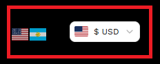 Podrás seleccionar tu idioma (Español o Inglés), y la moneda correspondiente a tu país.
