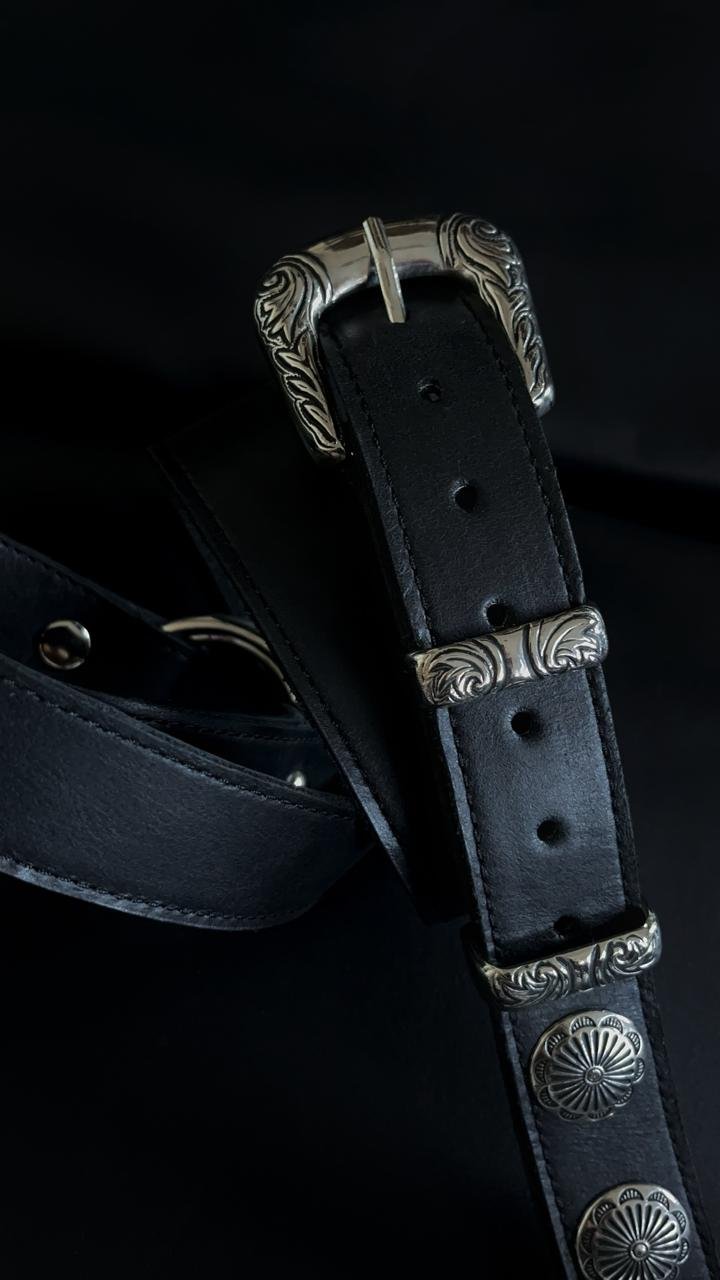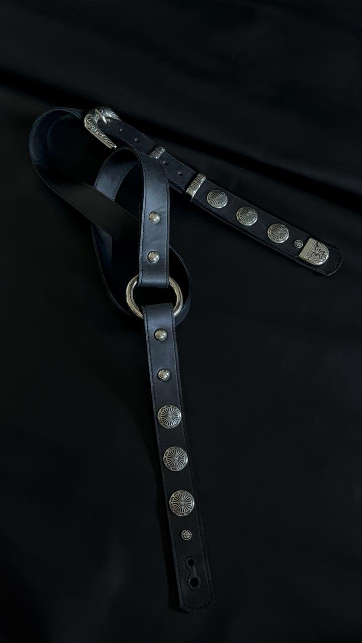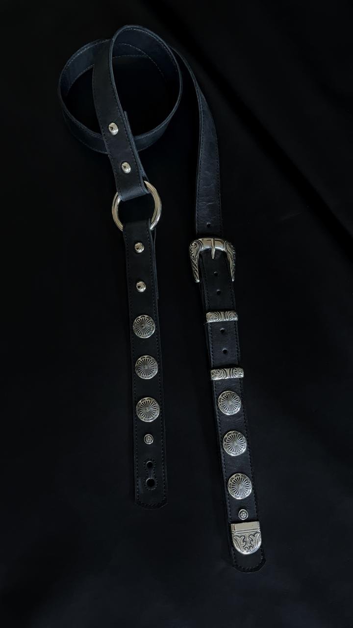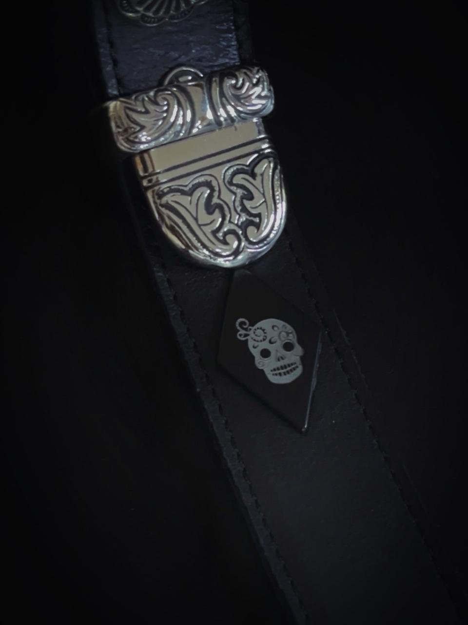 Hermosa correa angosta con conchos labrados y regulación de largo con hebilla. Podes utilizar cualquiera de sus extremos en el frente! Un modelo clásico reversionado para que te luzcas mientras tocas tu instrumento.
