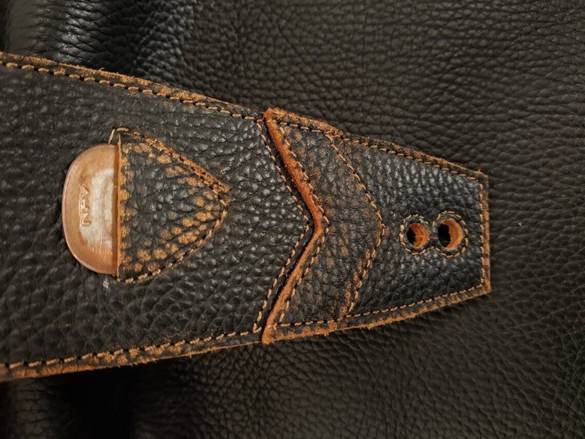 →Los orificios de cada extremo y ranuras desde donde regulas el largo de la correa, están cosidos por todos sus bordes para soportar perfectamente el peso de tu instrumento a través de los años!