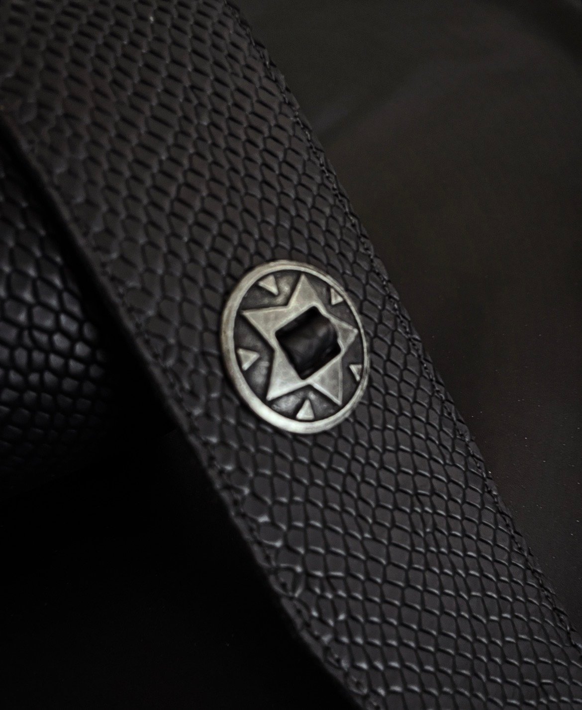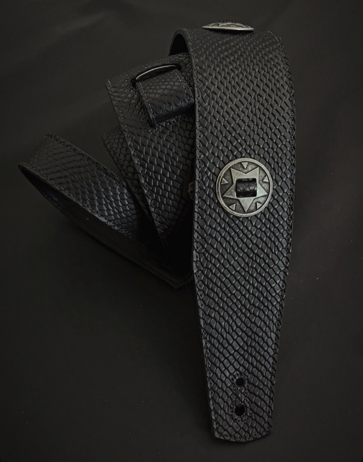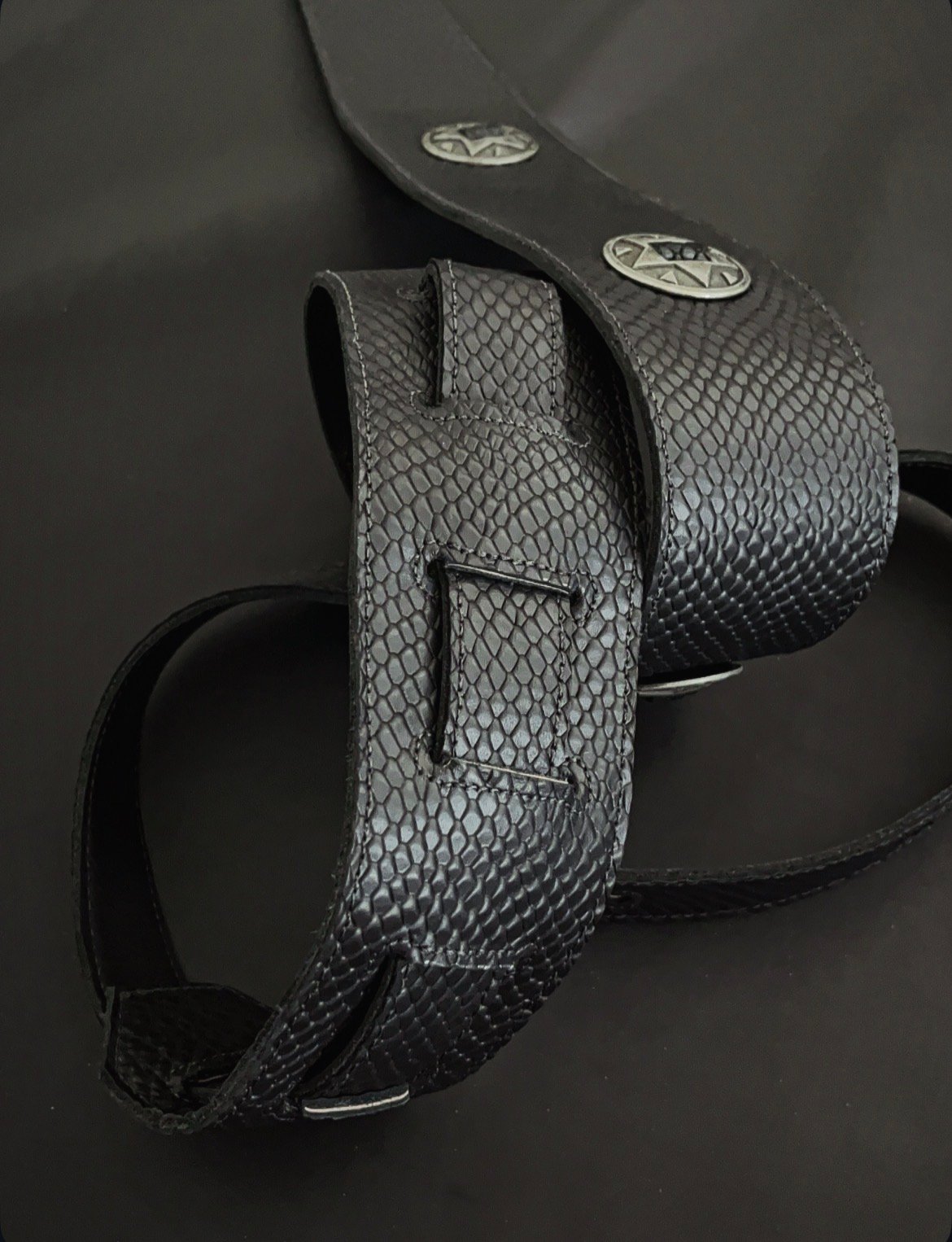 Esta excepcional correa destaca por la textura de su cuero y los conchos metálicos de estrella. Calidad superior y una flexibilidad inigualable, convirtiéndola en el compañero perfecto para aquellos músicos que valoran la comodidad sin comprometer el estilo.