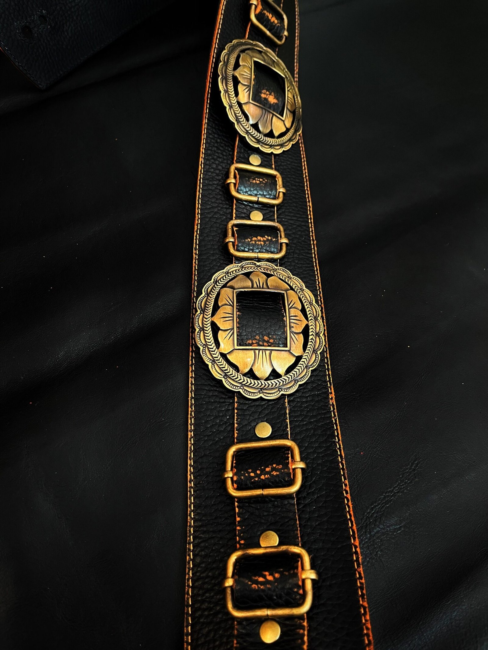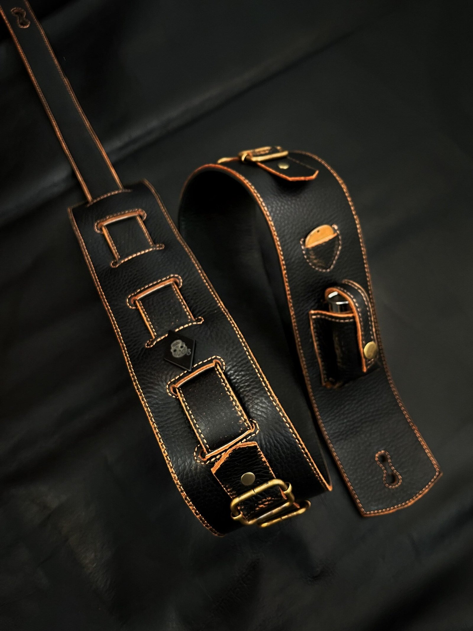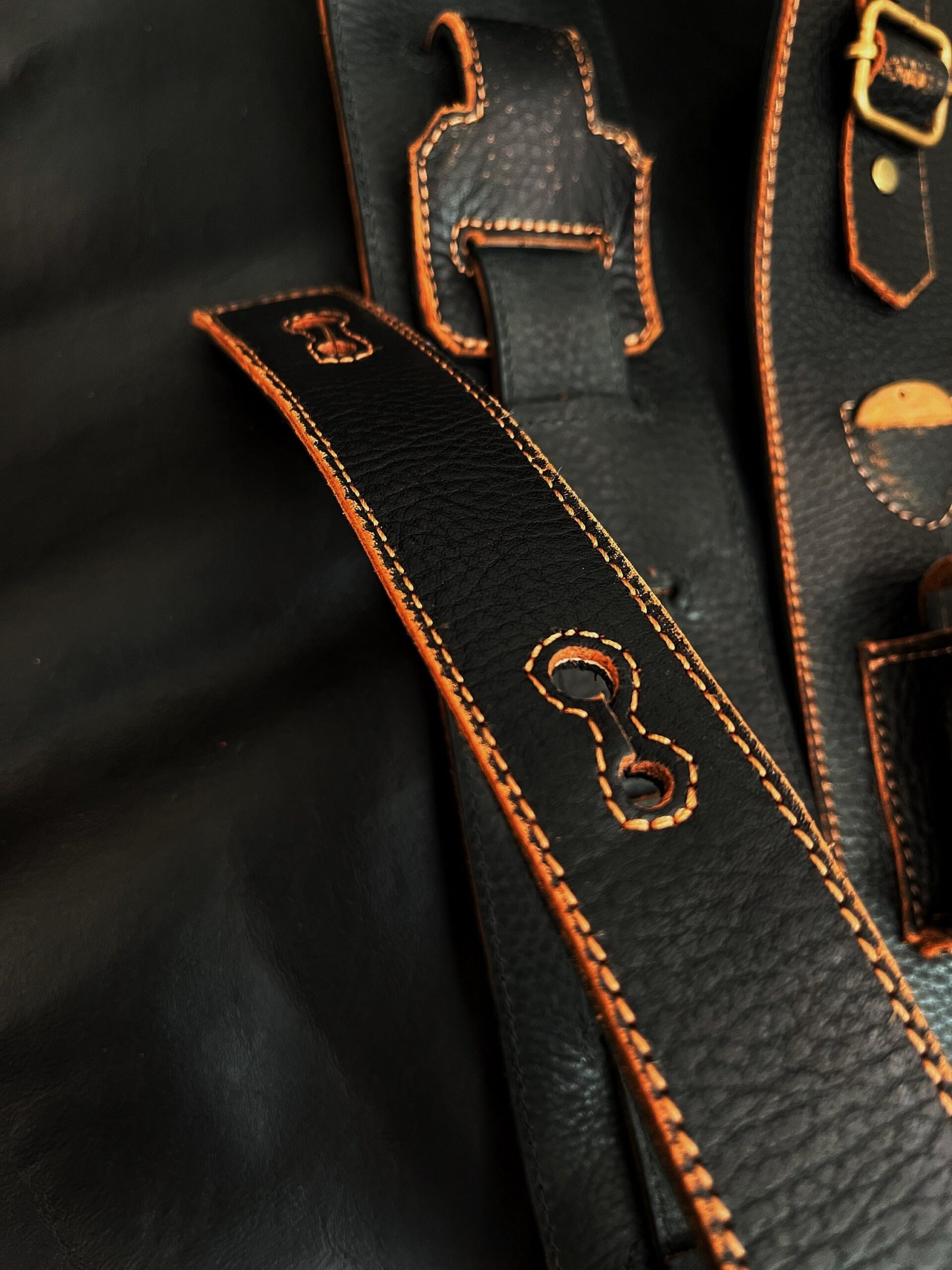 →Los orificios de cada extremo y ranuras desde donde regulas el largo de la correa, están cosidos por todos sus bordes para soportar perfectamente el peso de tu instrumento a través de los años!