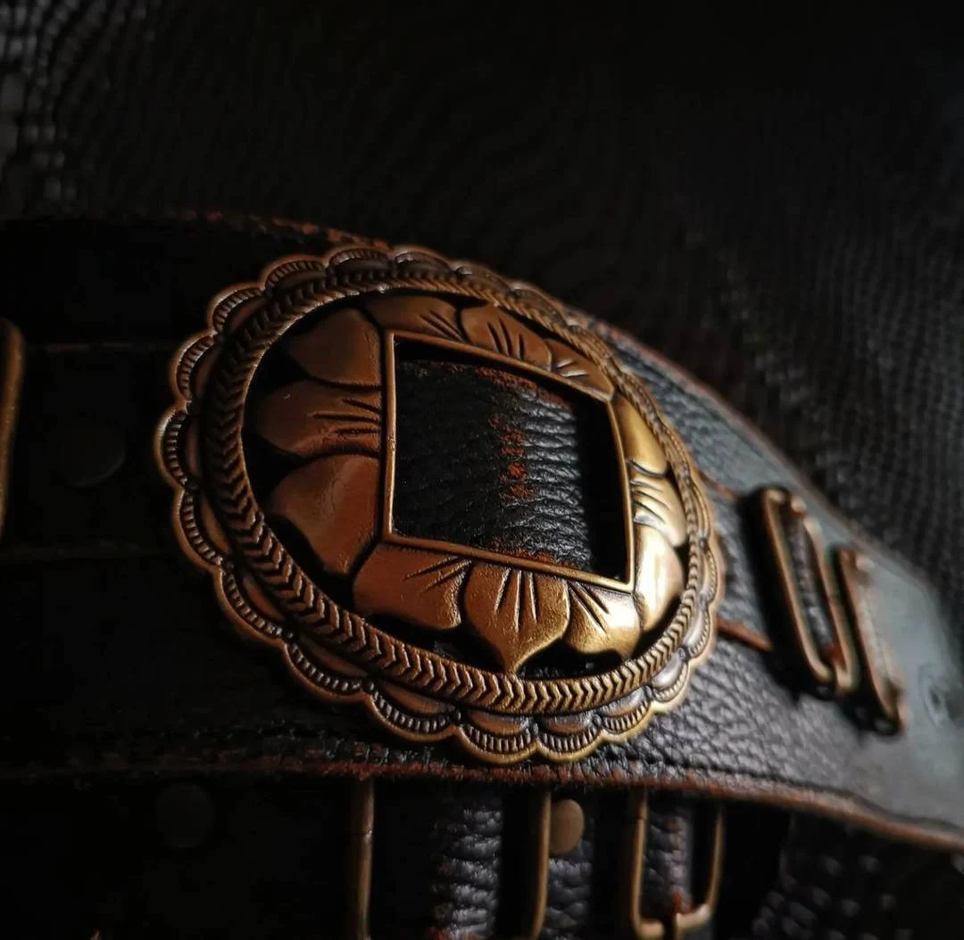 Confeccionada en cuero legítimo, destaca por su notable flexibilidad y la belleza de sus conchos labrados, combinados con hebillas. Este diseño se convirtió en uno de los más elegidos de los últimos años, añadiendo un toque de estilo y distinción a cualquier actuación.