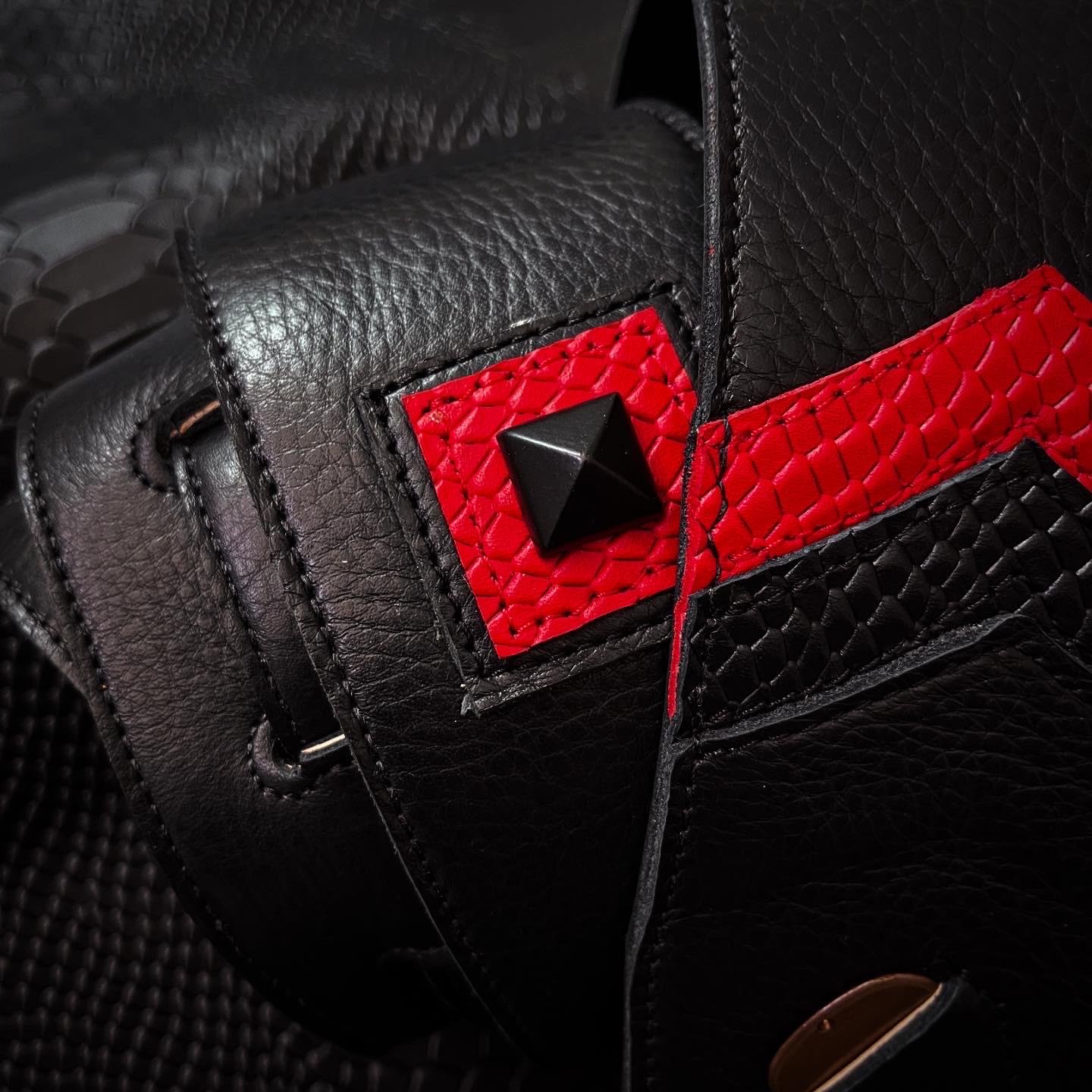 Parches con picramides macizas que resaltan en toda su extensión, esta correa no solo llama la atención, sino que también ofrece funcionalidad. Cuenta con una práctica cavidad con capacidad para dos púas, un detalle que todo guitarrista apreciará. ¡Agrega un toque de estilo y practicidad a tus actuaciones con esta correa única y versátil!