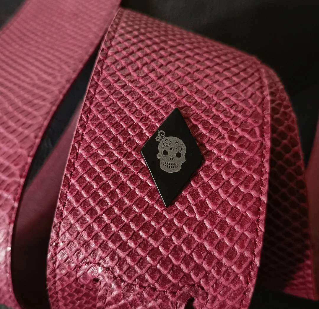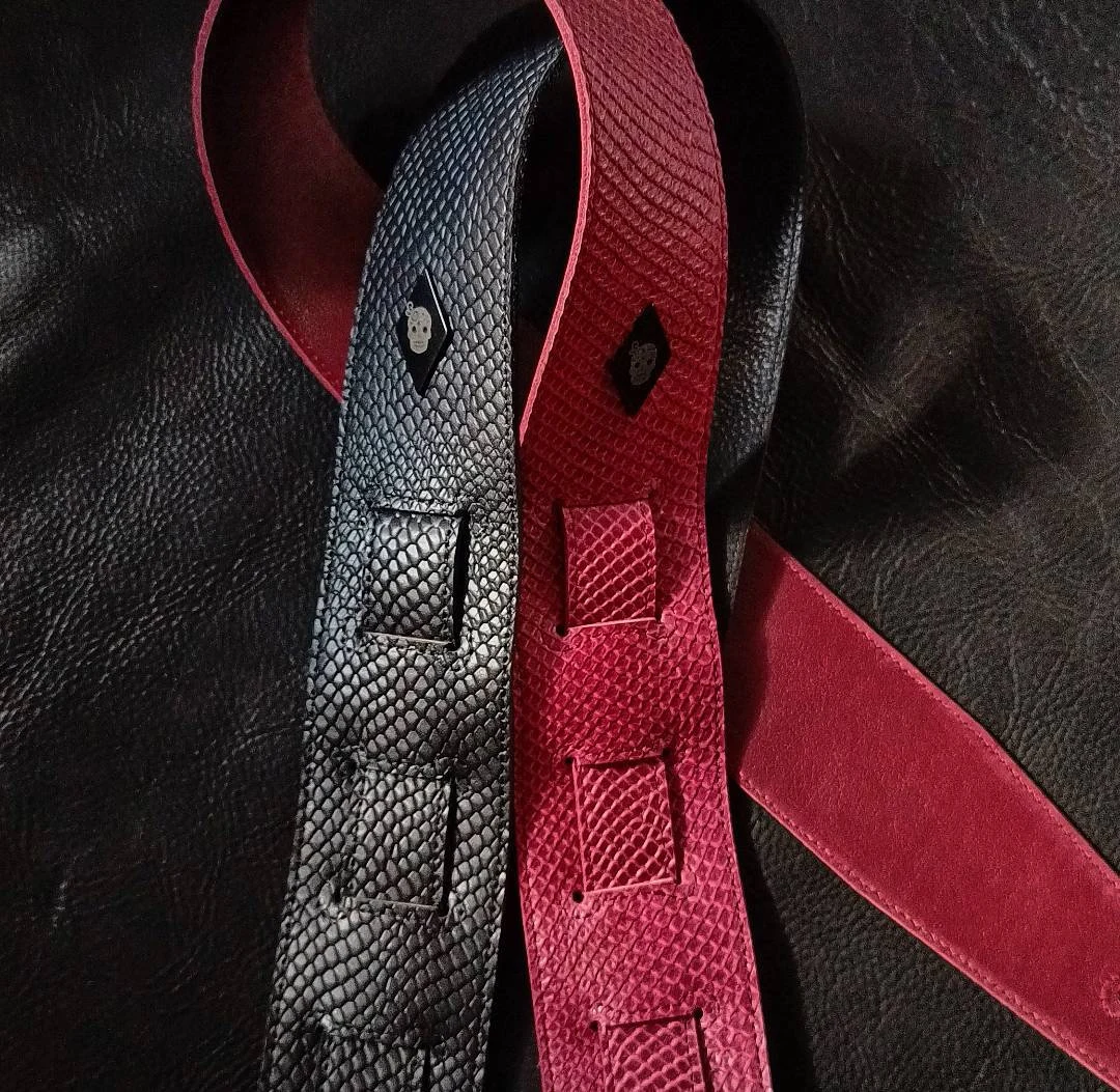 →Los orificios de cada extremo y ranuras desde donde regulas el largo de la correa, están cosidos por todos sus bordes para soportar perfectamente el peso de tu instrumento a través de los años!