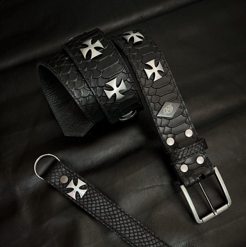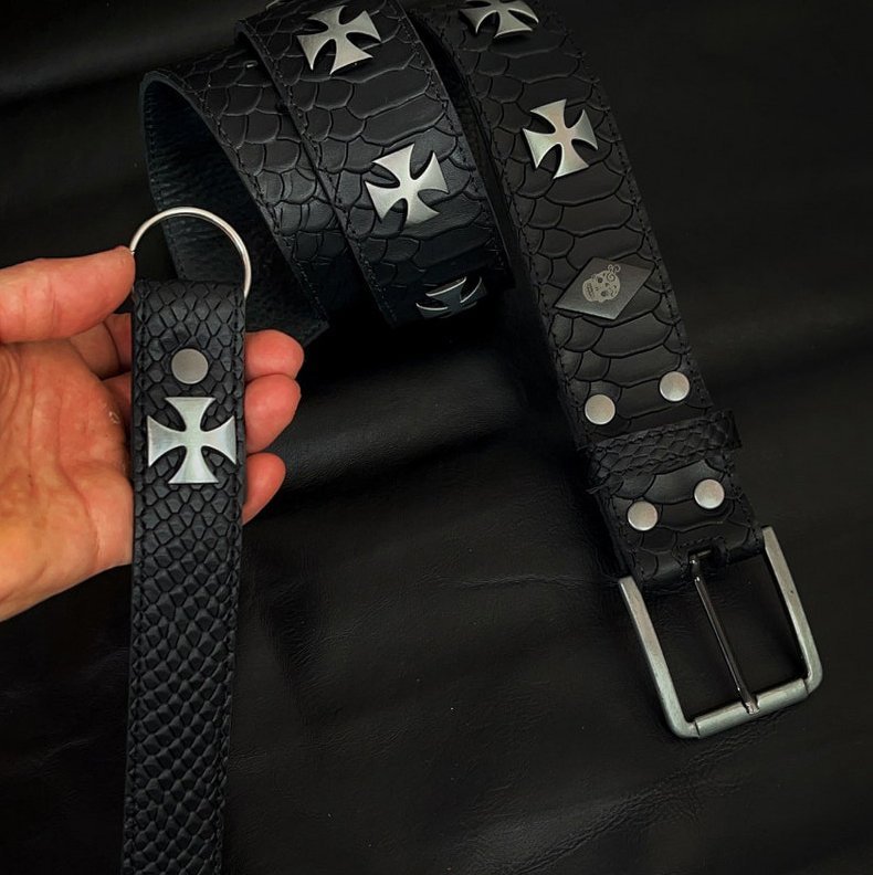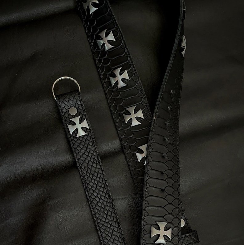 Este cinturón, completamente forrado y con terminaciones detalladas, es el complemento perfecto para hombres y mujeres que adoptan el estilo rocker y heavy metal. Con su diseño robusto y elegante, este cinturón añade un toque distintivo a cualquier atuendo, ya sea en el escenario o en la vida cotidiana. Irradia autenticidad y audacia!