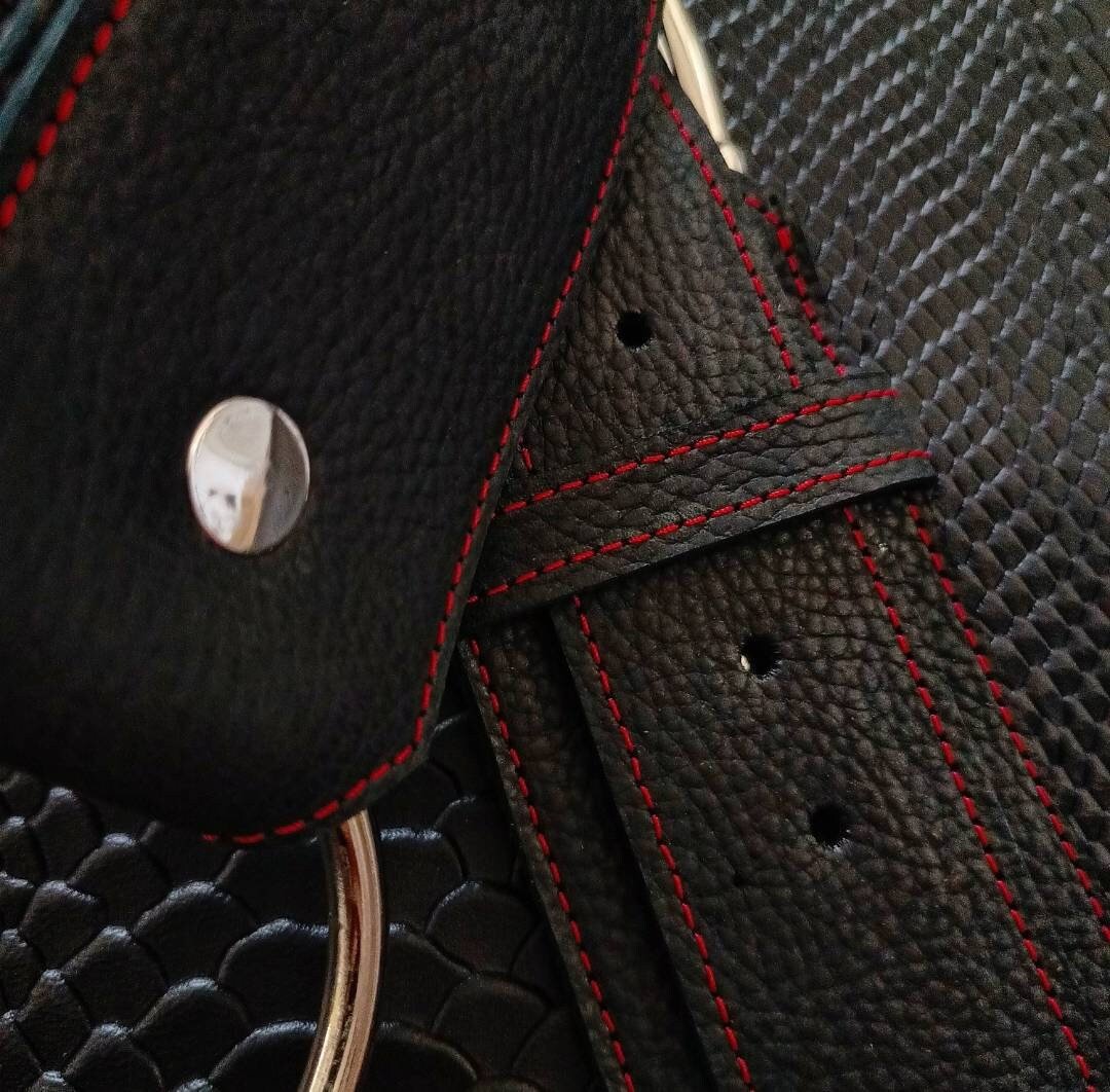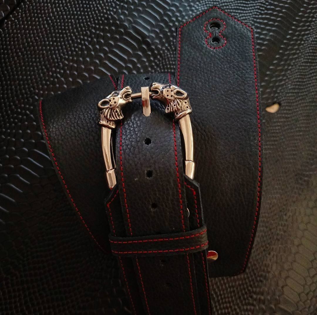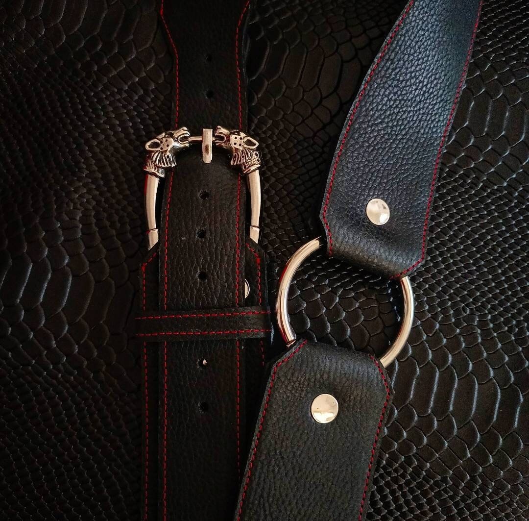Una correa de cuero espectacular! Podrás usar la argolla o la hebilla de gargolas en el frente y tener dos opciones es una sola correa!