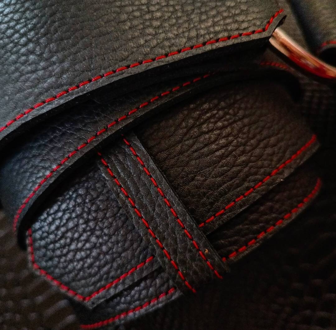 La correa está confeccionada completamente a mano. Se tiza, se corta y ensamblan todas las piezas, una por una.