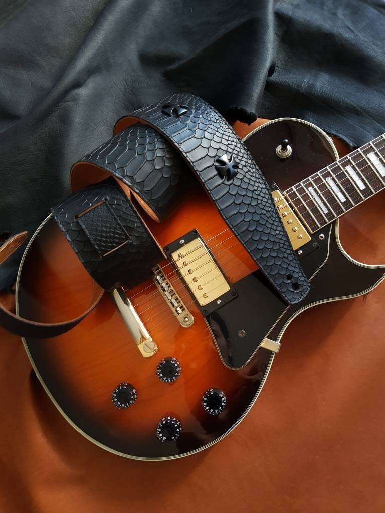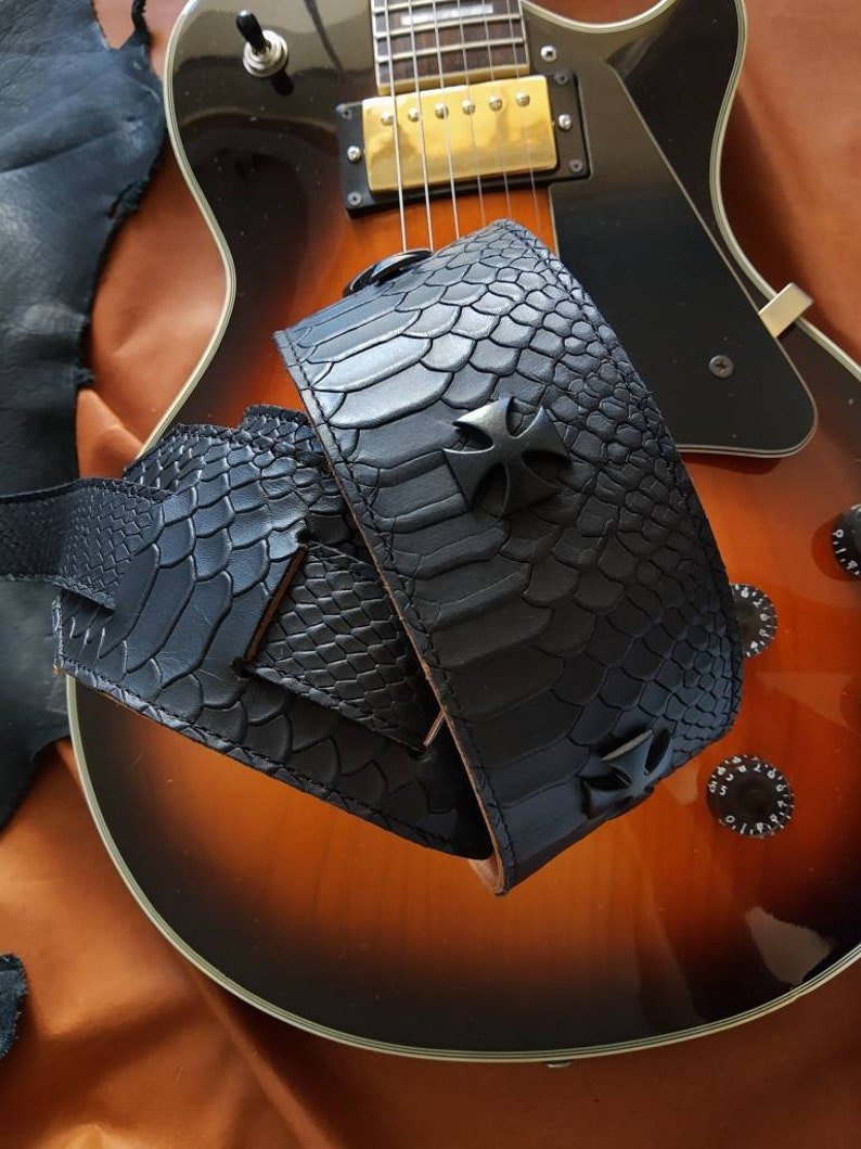 → Los orificios de cada extremo y ranuras desde donde regulas el largo de la correa, están cosidos por todos sus bordes para soportar perfectamente el peso de tu instrumento a través de los años!