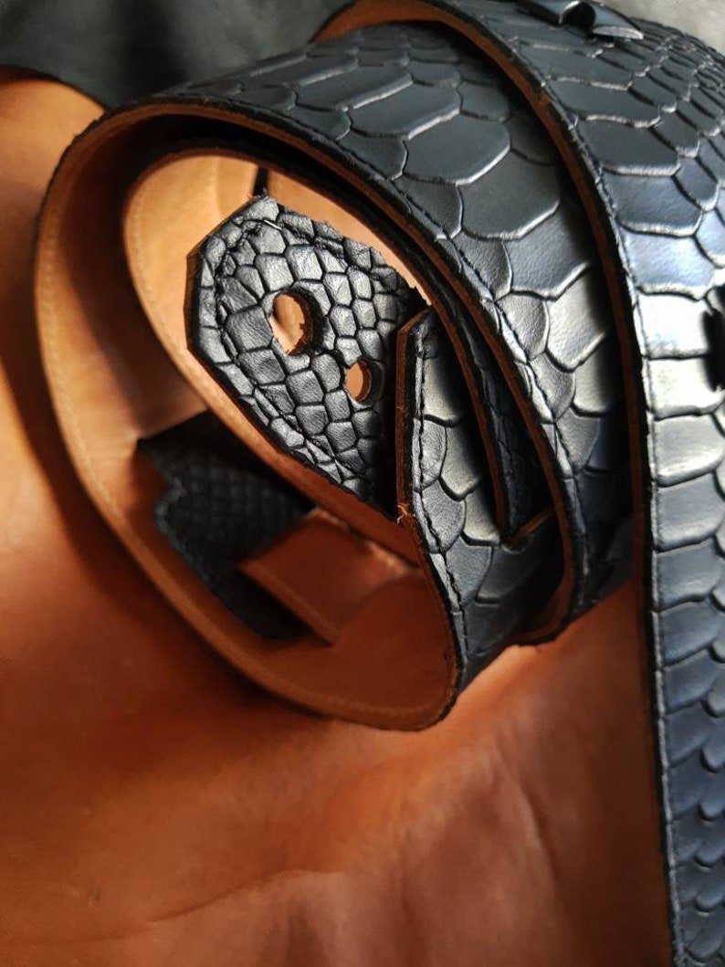 La correa está confeccionada completamente a mano. Se tiza, se corta y ensamblan todas las piezas, una por una.