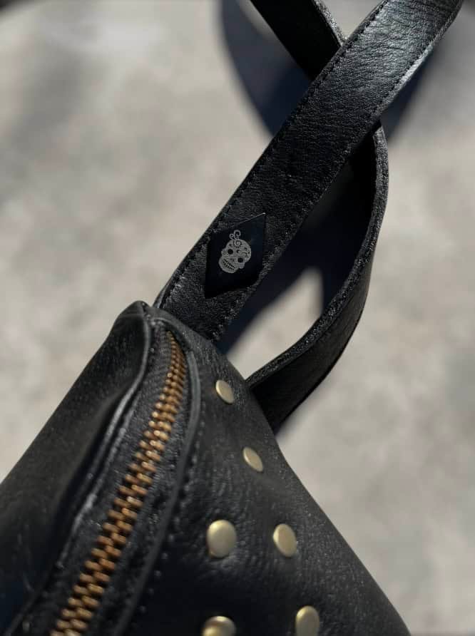 Original Riñonera de cuero legítimo tachonada! Una opción ideal para tener cerca todos los objetos personales necesarios para el día a día. Muévete con libertar usándola como bandolera para tener tus manos libres a la vez que obtienes un look que destaque!