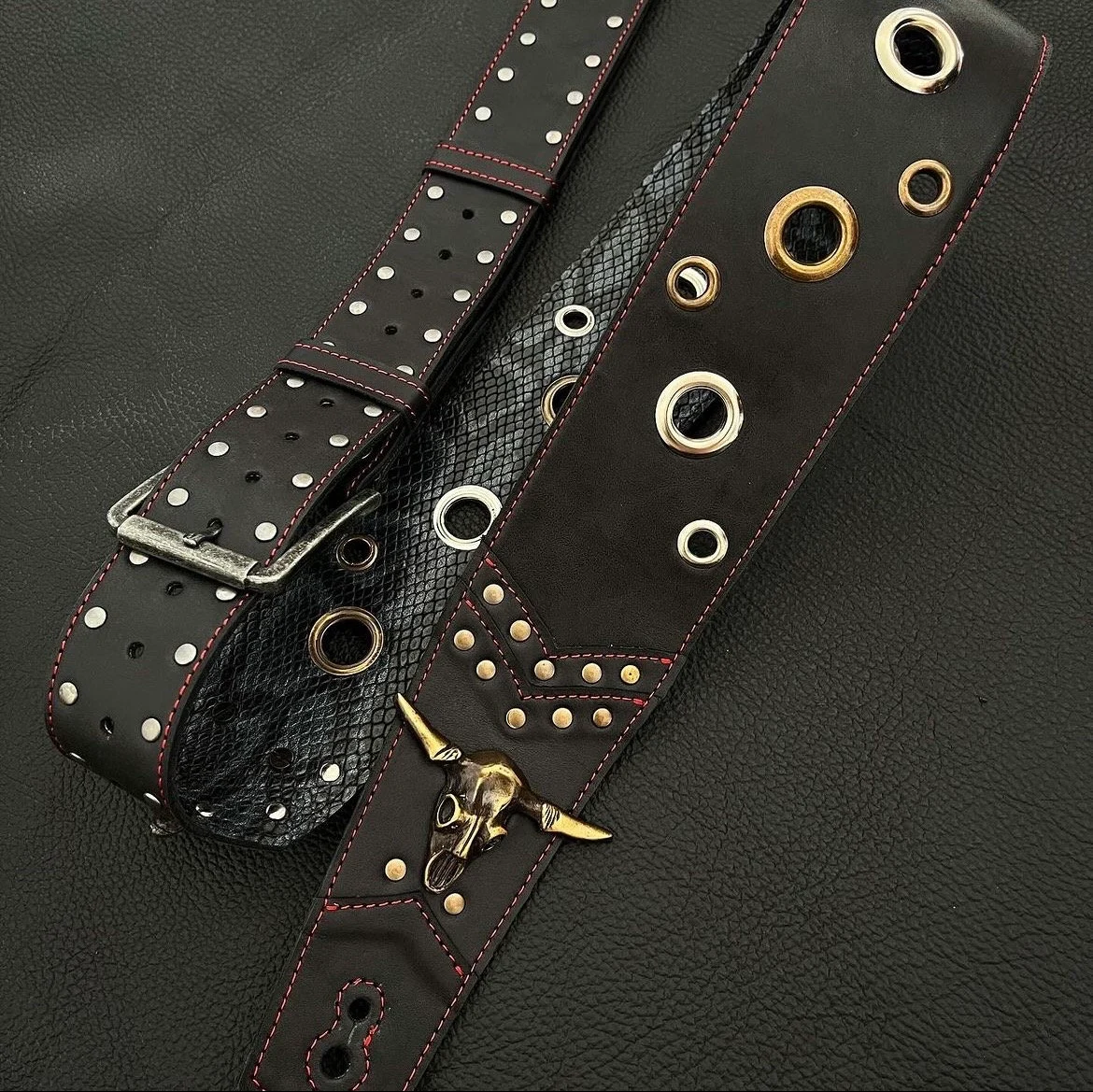 Audaz y original! esta correa es única en su estilo y llamará poderosamente la atención en el escenario. Fabricada con cuero sumamente flexible, te brinda la comodidad y libertad de movimiento que necesitas durante tus actuaciones. Si estás buscando destacarte y añadir un toque de actitud a tu estilo, ¡entonces este strap es para vos! Demuestra tu individualidad y personalidad en cada nota que toques.