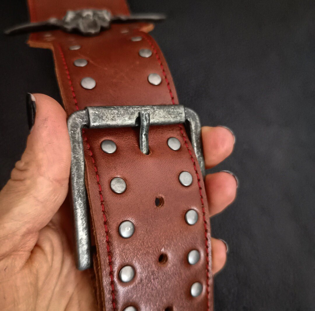 La correa está confeccionada completamente a mano. Se tiza, se corta y ensamblan todas las piezas, una por una.